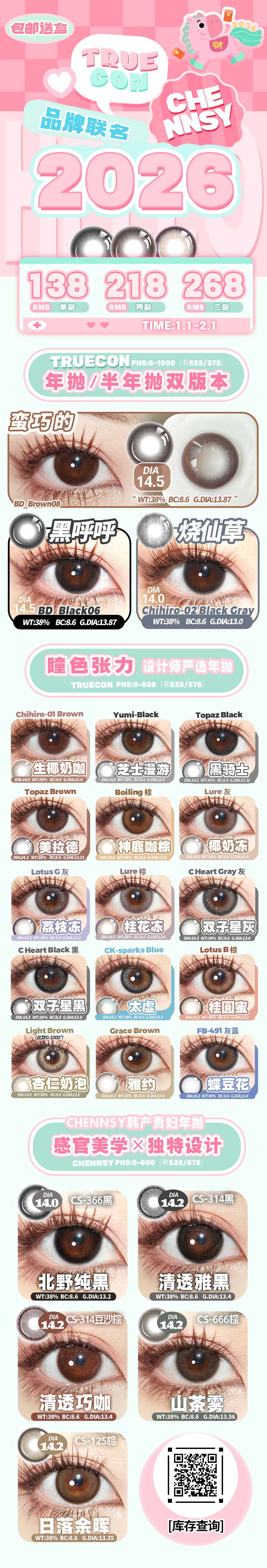Truecon&Chennsy年抛&半年抛美瞳 联名开抢