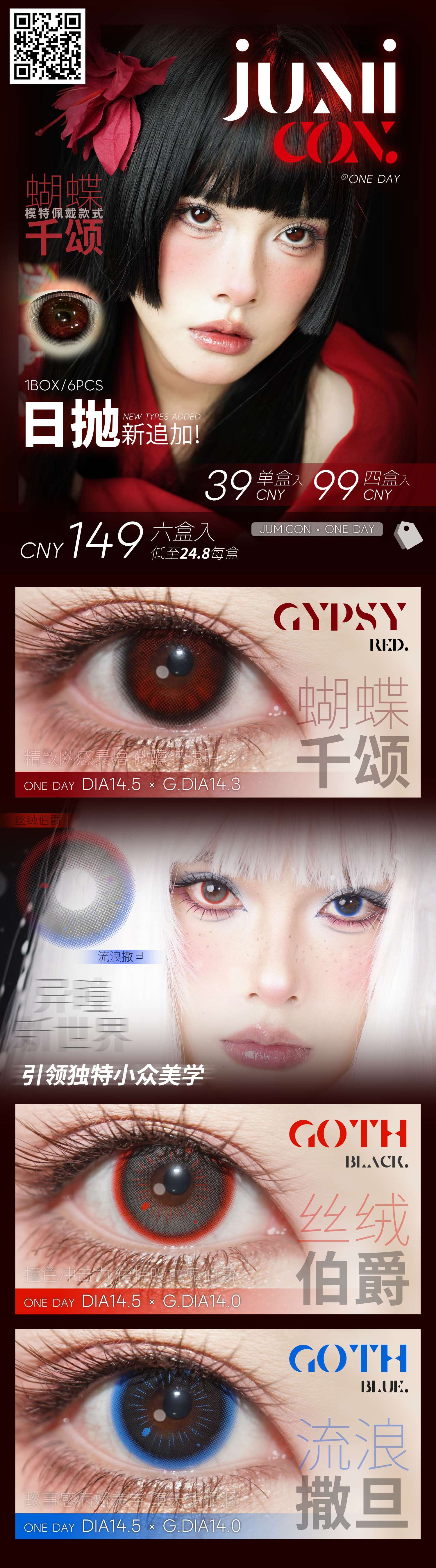 Jumicon日抛美瞳 6片装 独特血红宝石 蝴蝶千颂