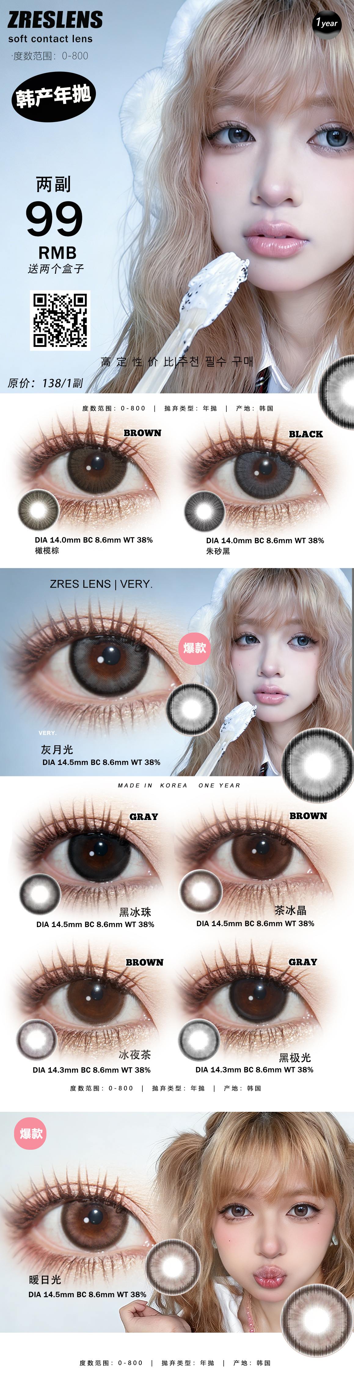 Zreslens年抛美瞳 限时秒杀