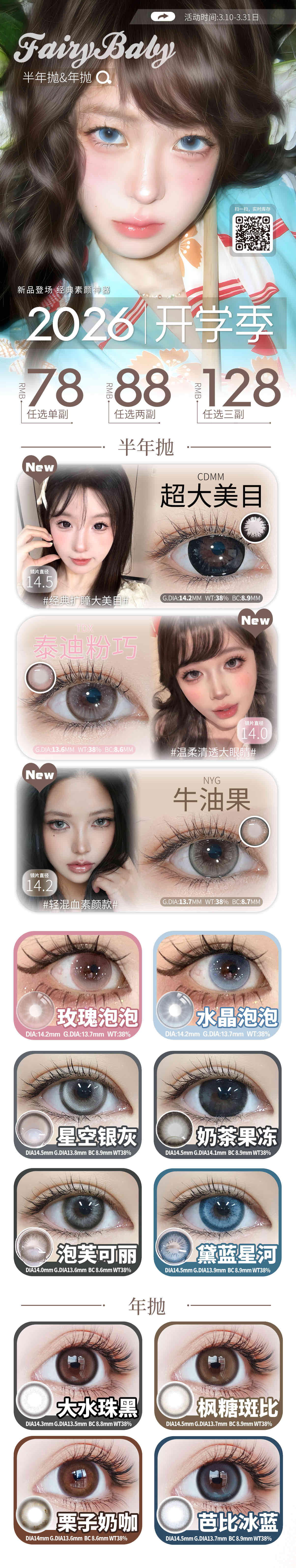 FAIRYBABY年抛&半年抛美瞳 2026开学季
