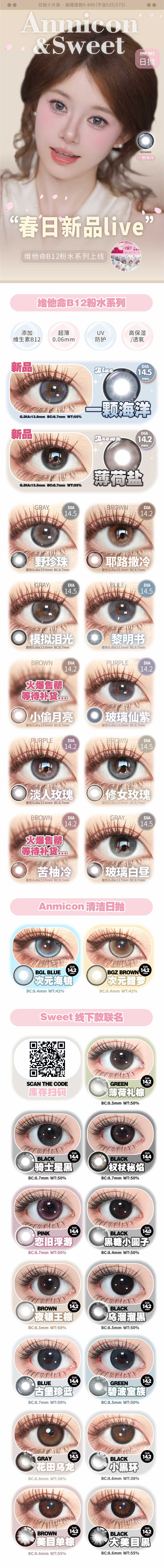 AnmiCon&Sweet日抛美瞳 维他命B12粉水春日新品live