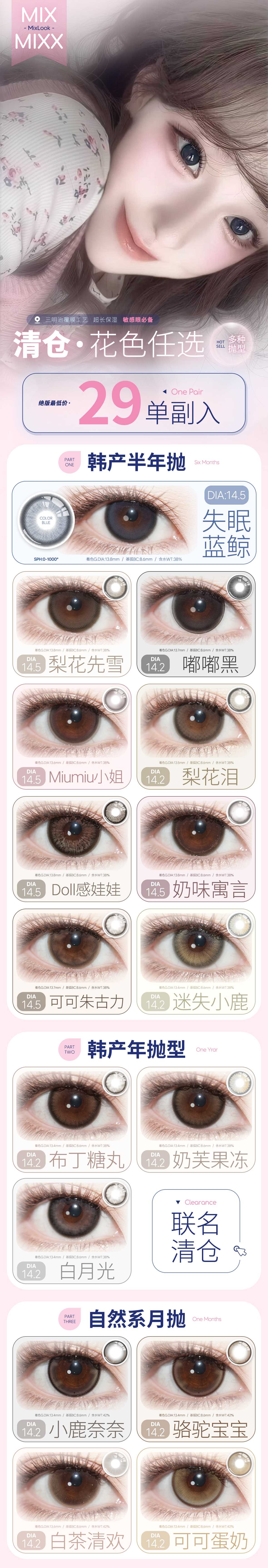 Mixlook&Mixmixx半年抛&年抛&月抛美瞳 品牌退市清仓