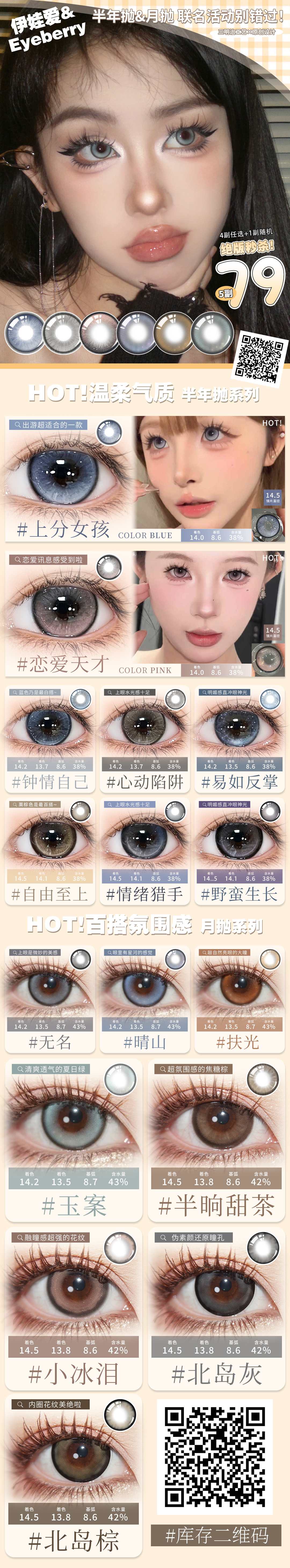 Yiwaeye伊娃爱&Eyeberry联半年抛&月抛美瞳 名绝版福利炸场