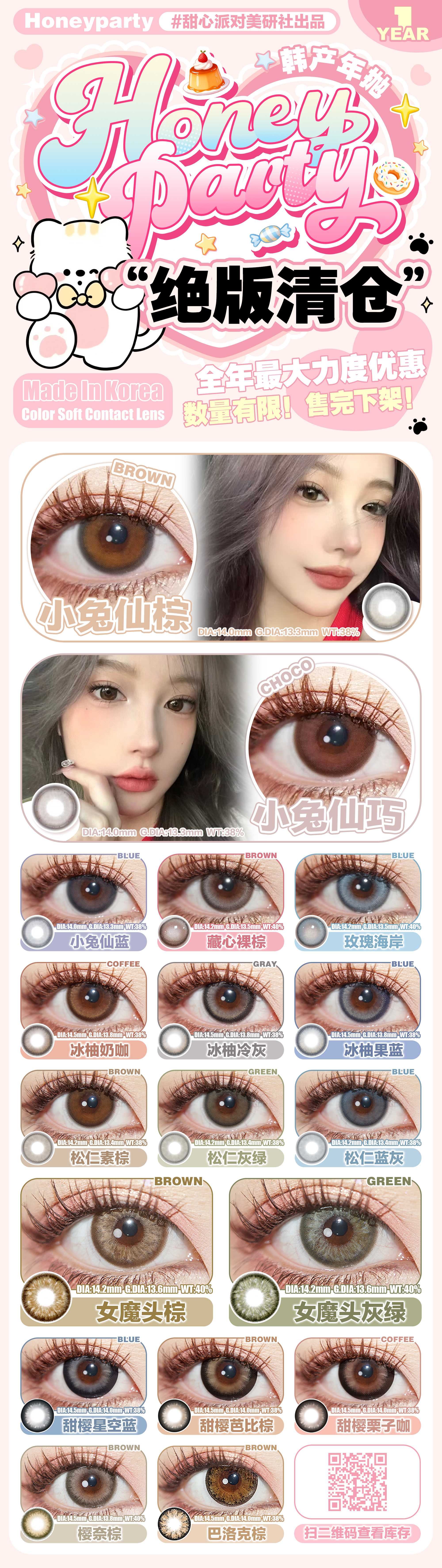 HoneyParty韩产年抛美瞳 绝版清仓 秒杀最终回
